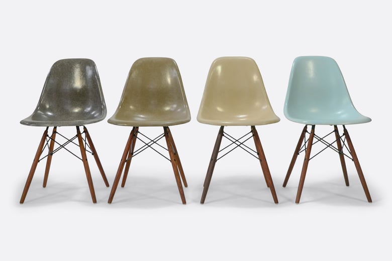 Set of 4 Eames fiberglass chairs stuhle rare colors Herman Miller 2.495,00 € / Sold Out